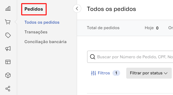- No menu lateral esquerdo, clique em "Pedidos", para acessar todos os pedidos com seus respectivos filtros para análise