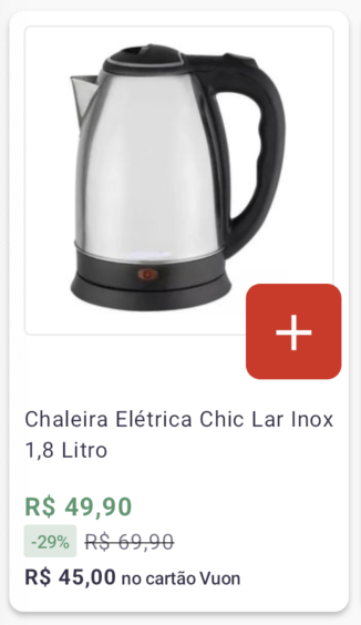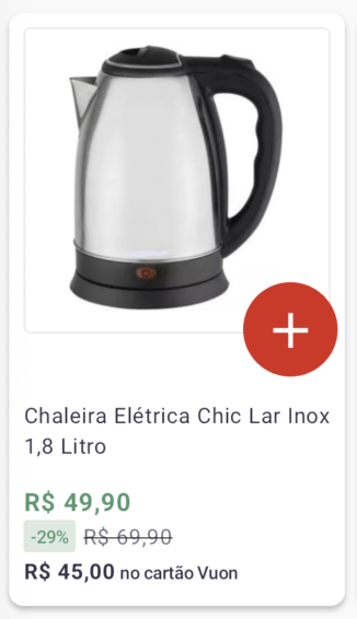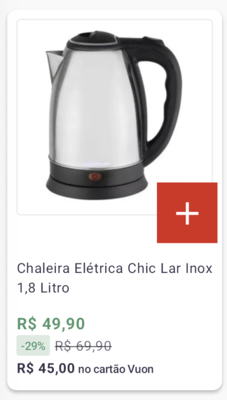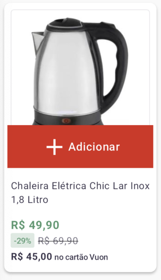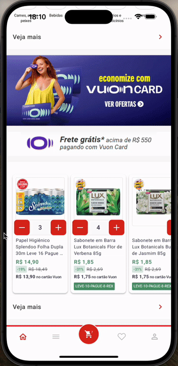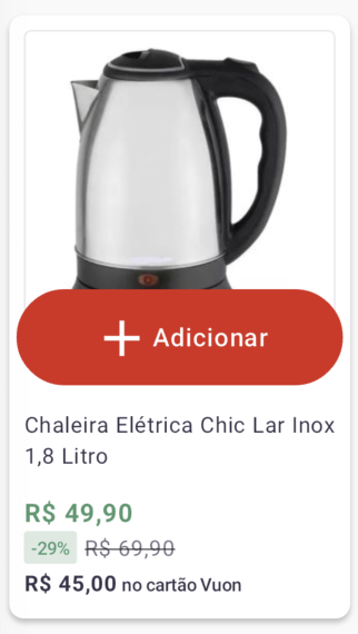 Entendemos que em alguns momentos o usuário não estará interessado em entrar na PDP para ver detalhadamente tudo sobre um item, apenas querendo adicioná-lo ao seu carrinho, muitas vezes também por ser algo que já está acostumado a consumir, por conta disso, criamos o Card de Adição Rápida, que pode ser ativado diretamente por nosso suporte (suporte@kobe.io) via chamado, sem a necessidade de uma nova versão do aplicativo.