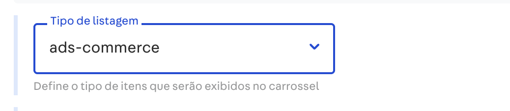 - No campo Tipo de listagem do carrossel, selecione a opção ads-commerce