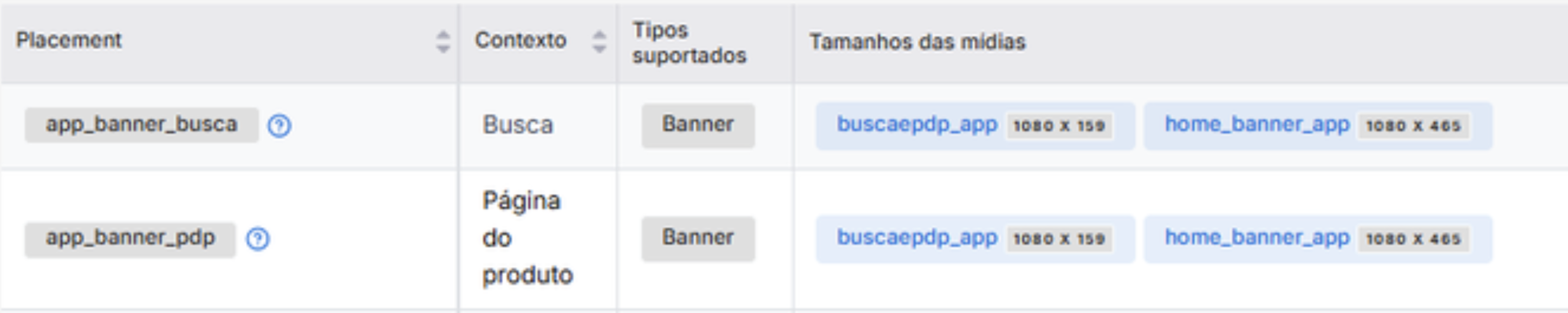 - Quantidade de anúncios: quantos banners patrocinados podem ser retornados nesse placement.
