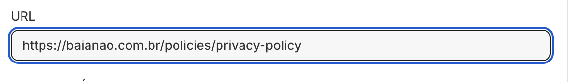 - No primeiro campo selecione a opção de URLs que será editada para exibição no app. As opções são: