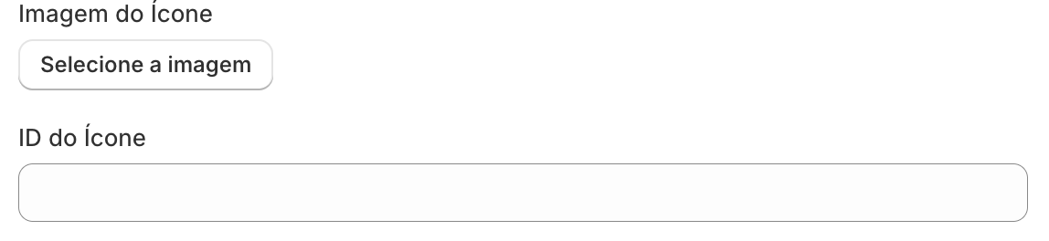 Em "Imagem do ícone" ou "Id do ícone", faça upload do arquivo que será exibido como ícone no card ou escolha um ícone do catálogo e insira o ID dele no campo indicado.
