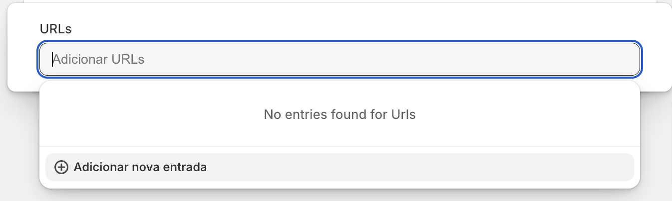 - Após clicar em URLs, clique em "Adicionar nova entrada" para abrir o card.